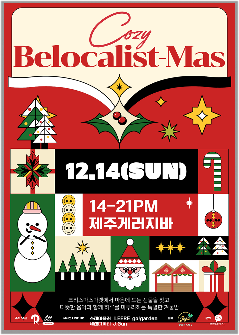 (12/14, 일) 서귀포에서 만나는 크리스마스 마켓 & 로컬 바이브 🎄로컬 밴드와 크리스마스 플리마켓이 한데 모여, 모두가 함께 머물고 싶은 겨울밤을 준비했어요. 작은 연말 축제로 초대합니다 ✨